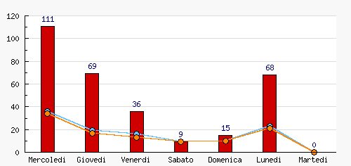 Mercoledi | 111 | 36.04% | +111  | 36 | 31.86% | +36  | 34 | 32.69% | +34  |