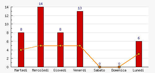 | Giovedi | 8 | 16.33% | -6  | 5 | 22.73% | 0  | 5 | 22.73% | 0  |