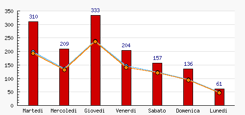 | Martedi | 310 | 21.99% | +310  | 199 | 20.18% | +199  | 193 | 20.04% | +193  |