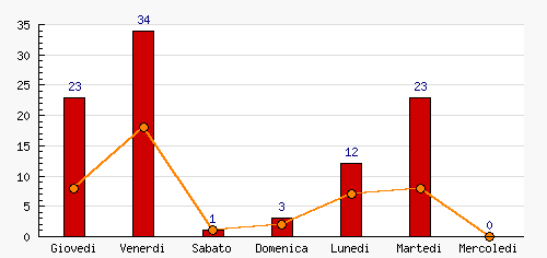 Giovedi | 23 | 23.96% | +23  | 8 | 18.18% | +8  | 8 | 18.18% | +8  |