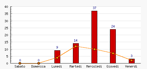 | Mercoledi | 37 | 42.53% | +23  | 10 | 28.57% | -2  | 10 | 28.57% | -2  |