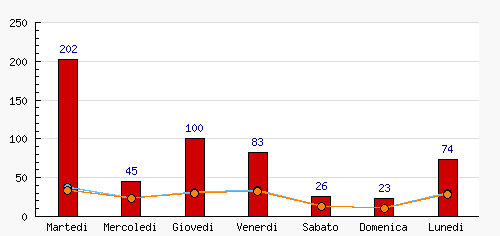 | Martedi | 202 | 38.48% | +202  | 38 | 22.22% | +38  | 34 | 20.73% | +34  |