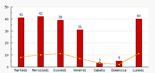| Martedi | 41 | 20.40% | +41  | 8 | 15.38% | +8  | 8 | 15.38% | +8  |