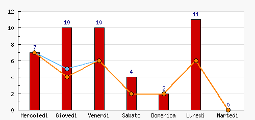Giovedi | 10 | 22.73% | +3  | 5 | 17.86% | -2  | 4 | 14.81% | -3  |