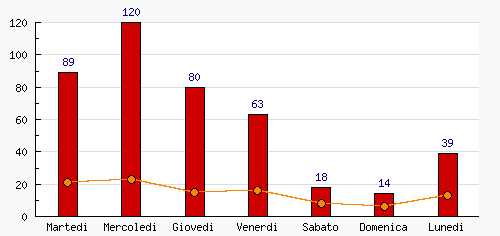 | Mercoledi | 120 | 28.37% | +31  | 23 | 22.55% | +2  | 23 | 22.55% | +2  |