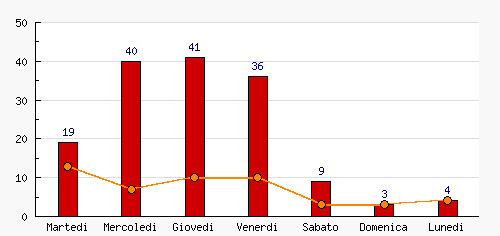 | Giovedi | 41 | 26.97% | +1  | 10 | 20.00% | +3  | 10 | 20.00% | +3  |