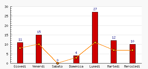 Giovedi | 11 | 13.92% | +11  | 8 | 17.39% | +8  | 8 | 17.39% | +8  |