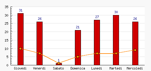 Giovedi | 31 | 19.14% | +31  | 10 | 21.74% | +10  | 10 | 21.74% | +10  |