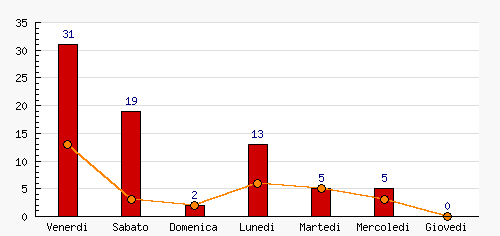 Venerdi | 31 | 41.33% | +31  | 13 | 40.63% | +13  | 13 | 40.63% | +13  |