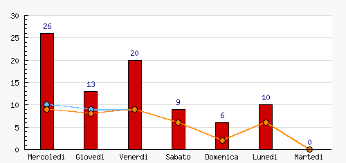 Mercoledi | 26 | 30.95% | +26  | 10 | 23.81% | +10  | 9 | 22.50% | +9  |