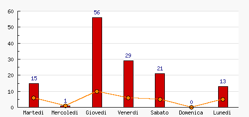 | Giovedi | 56 | 41.48% | +55  | 10 | 30.30% | +9  | 10 | 30.30% | +9  |