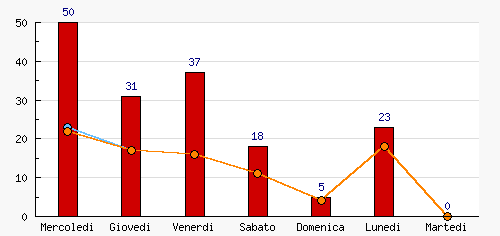 Mercoledi | 50 | 30.49% | +50  | 23 | 25.84% | +23  | 22 | 25.00% | +22  |