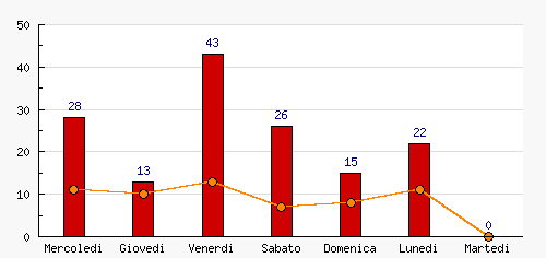 Venerdi | 43 | 29.25% | +30  | 13 | 21.67% | +3  | 13 | 21.67% | +3  |