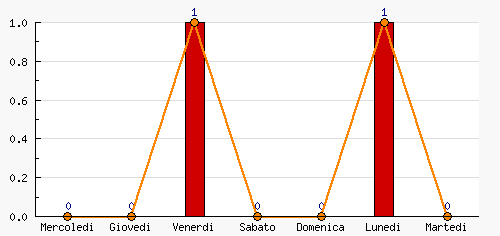 | Mercoledi | 0 | 0.00% | 0  | 0 | 0.00% | 0  | 0 | 0.00% | 0  |