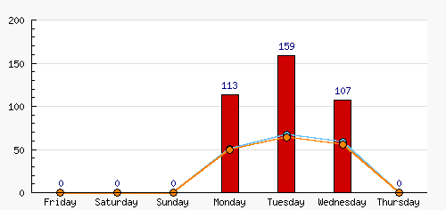 | Martedi | 159 | 41.95% | +46  | 67 | 37.85% | +16  | 64 | 37.65% | +14  |