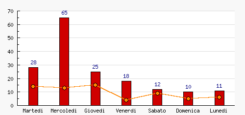 | Martedi | 28 | 16.57% | +28  | 14 | 21.21% | +14  | 14 | 21.21% | +14  |