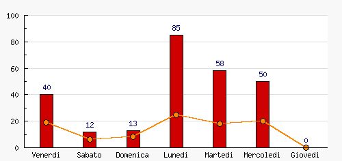 Lunedi | 85 | 32.95% | +72  | 25 | 26.04% | +17  | 25 | 26.04% | +17  |