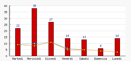 | Lunedi | 14 | 10.45% | +8  | 3 | 6.25% | -1  | 3 | 6.67% | -1  |
